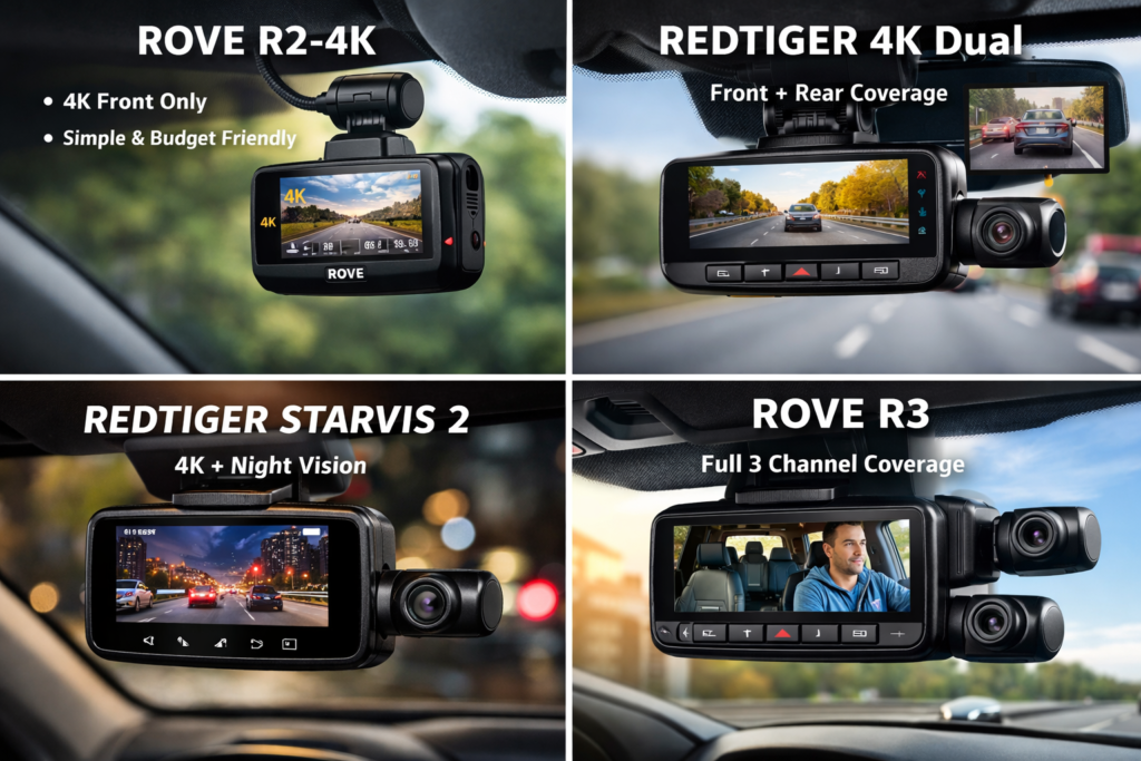 If you just want basic front protection, the Rove R2-4K or the Viofo A119 V3 will quietly do the job without drama.